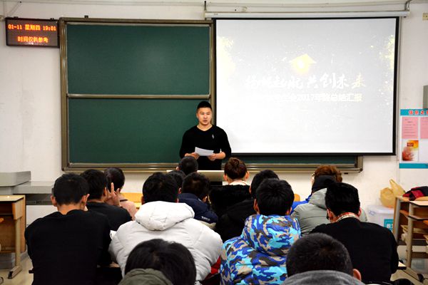 1月11日,新葡萄AMG官方网站在兴隆山校区召开2017年新葡萄AMG官方网站学生会年终总结大会。学院团委书记范泽斌老师、学院2017届学生会主席团成员、各部门部长和干事参加了本次大会。学生会主席郭超主持此次会议。