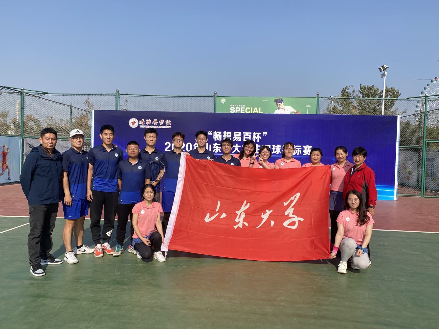 11月10日,2020年山东省大学生网球锦标赛在潍坊奥体中心举行,共有11支队伍参赛。新葡萄AMG官方网站网球队在教练员马颖竹、张洪振的带领下,派出7男7女共14名队员参加了丙组和甲组的比赛,丙组获得单项1金1银2铜以及男子团体冠军、女子团体亚军的优异战绩,甲组获得男子团体第四名、女子团体第五名。