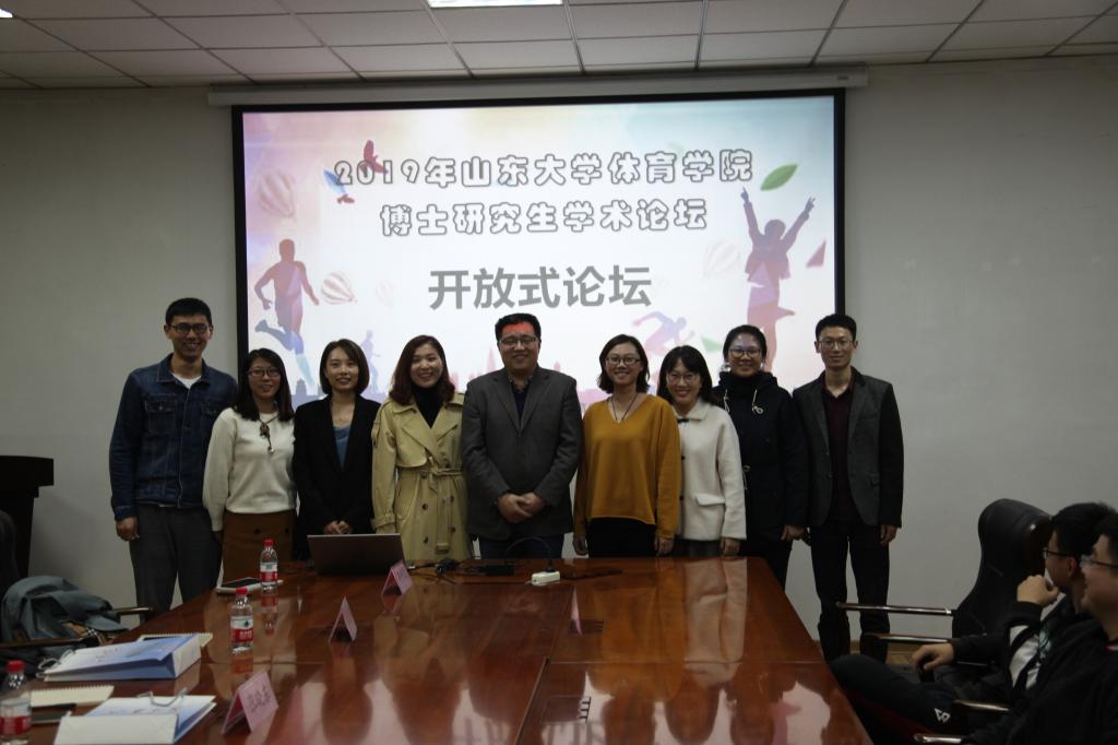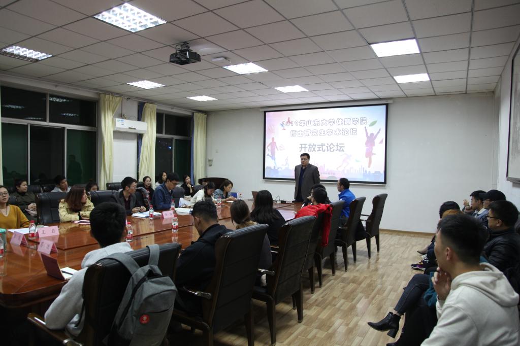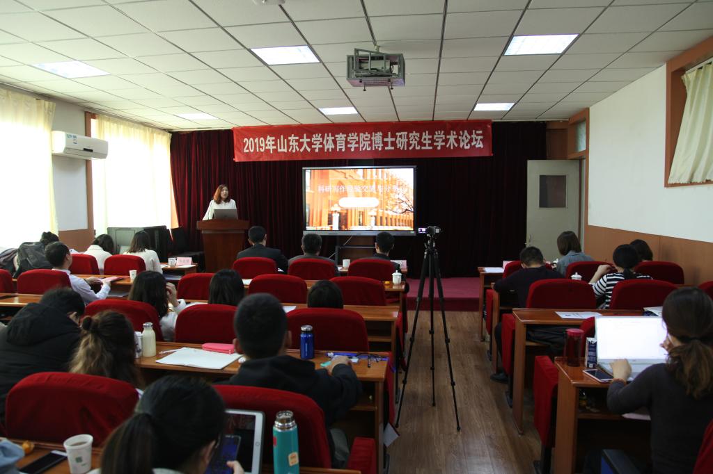 11月16日,由新葡萄AMG官方网站研究生院主办、新葡萄AMG官方网站承办、体育系统仿真专业委员会协办的博士研究生学术论坛在山东大学千佛山校区举行。本次论坛邀请了东北大学、北京体育大学、华东师范大学、香港中文大学、上海新葡萄AMG官方网站以及新葡萄AMG官方网站共8位博士参加了本次论坛,围绕体育学科前沿领域的最新进展、科学研究方略、海内外投稿经验等8个方向进行了广泛讨论。新葡萄AMG官方网站副院长石振国,教师代表张宪亮、李拓键、朱启莹,研究生秘书崔莉莉等部分教师参加了本次学术论坛。2019级博士研究生王志文主持本次论坛。