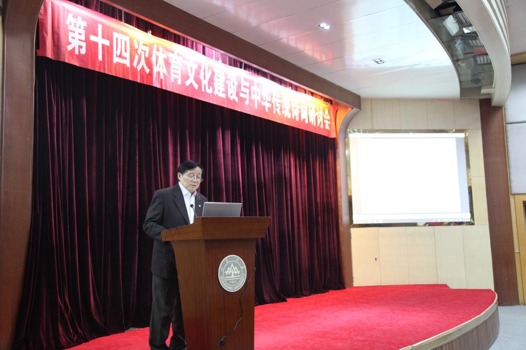 10月18日,第十四次体育文化建设与中华传统诗词研讨会在新葡萄AMG官方网站举行。原全国政协常委、北京市人大常委会副主任、北京体育大学副校长田麦久,中华全国体育总会顾问、国家体育总局原副局长崔大林,中国人民解放军特种作战学院军事体育战略研究中心原主任刘德佩,中国体育科学学会副理事长、体育社会科学分会主任委员、北京体育大学原党委书记、校长杨桦,沈阳新葡萄AMG官方网站原党委书记、院长王钰清,新葡萄AMG官方网站党委副书记仝兴华等领导嘉宾出席本次研讨会。研讨会开幕式由中国体育科学学会体育社会科学分会副主任委员兼秘书长黄亚玲主持。